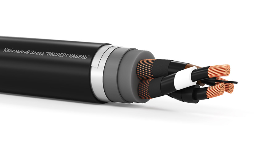 С экраномКабели силовые с медными токопроводящими жилами, полупроводящим экраном по жиле, изоляцией из этиленпропиленовой резины, полупроводящим экраном по изоляции, разедлительным полупроводящим слоем, экраном из медных проковолок, скрепленных медной лентой, разедлительным полупроводящим слоем, внутренней оболочкой из поливинихлоридного пластиката, броней из алюминиевых лент, наружной оболочкой из поливинихлоридного пластиката.